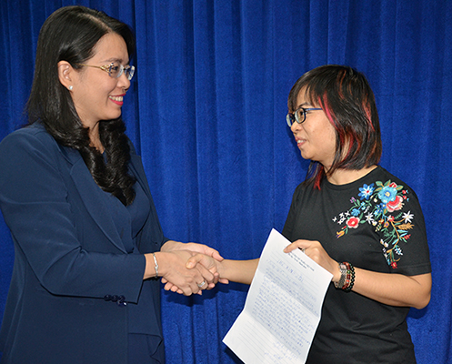 Phó Giám đốc Sở Du lịch TP. HCM Nguyễn Thị Ánh Hoa trao thư xin lỗi của tài xế Dũng đến con dâu của cụ ông Oki Toshiyuki