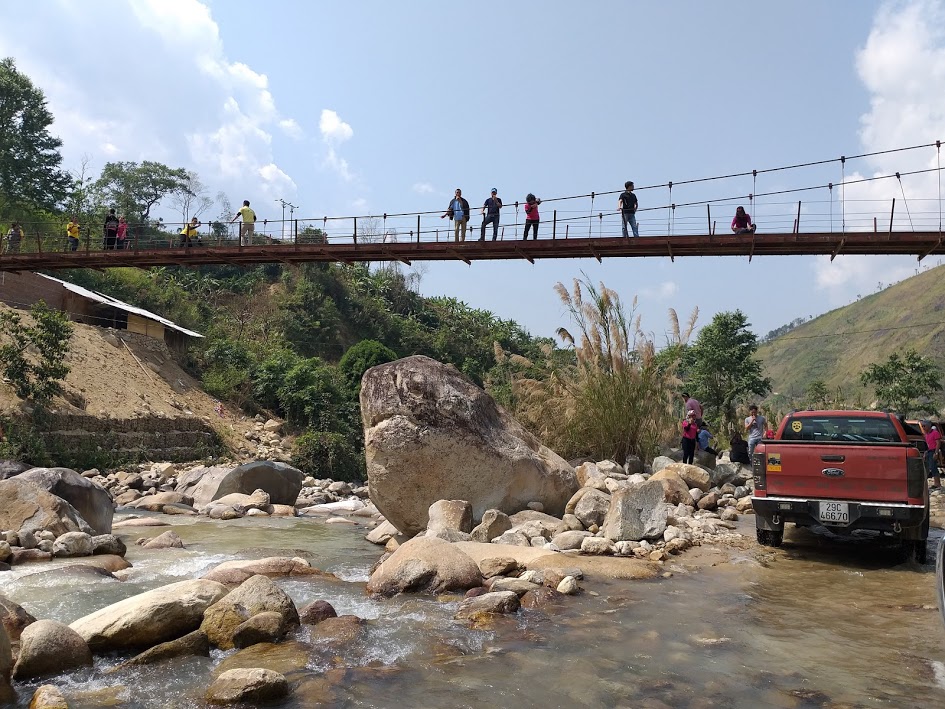 Vượt qua chặng đường 430 km từ Hà Nội, chúng tôi mới đến điểm trường mầm non bản Sàng Mà Pho, xã Sin Suối Hồ, huyện Phong Thổ, tỉnh Lai Châu. Có những thành viên trong nhóm từ TP.HCM bay ra để tham gia đoàn. Hệ thống giao thông vào bản cực kỳ yếu kém, trước khi đoàn thiện nguyện của Cho Một Tương Lai vào khảo sát, chưa một ô tô nào vào tới bản. Đoạn đường 20km từ trung tâm xã vào bản Sàng Mà Pho có 13 khúc cua tay áo, một con suối lớn toàn đá tảng. Hơn 80 con người, đi trên 24 xe bán tải hầm hố, cần mẫn mang yêu thương đến những người anh em, đồng bào mình nơi miền biên viễn. Bộ đàm liên tục có tiếng nhắc nhở “có xe máy đi ngược chiều đang đổ dốc”, “cua gấp không thể “lấy đỏ” 1 lần”, “có 3 xe chở mía rất nặng đi xuôi chiều”... nhưng cũng có những lúc rất lâu bộ đàm im ắng, là lúc các xe đều đang vào cua, sau đó là một câu ngắn gọn vang lên “cua rất tức, mọi người chú ý”. Ngày chúng tôi đi, trời nắng, đường khô ráo, nếu trời mưa, chắc chắn không thể vào được Sàng Mà Pho.
