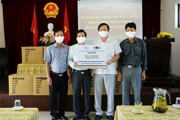 Tại tỉnh Thừa Thiên Huế, Tập đoàn BRG trao tặng 10.000 khẩu trang vải kháng khuẩn đến các lực lượng tham gia công tác phòng chống dịch Covid-19 tại hai xã Vinh Xuân và Vinh Thanh, huyện Phú Vang, qua đó thể hiện tinh thần trách nhiệm của doanh nghiệp với cộng đồng.