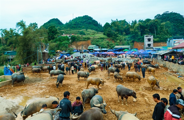 Mỗi phiên chợ là một ngày hội để vui chơi cho bõ những ngày cặm cụi, vất vả. Người ta đổ xuống từ đỉnh Thào Chư Phìn, nơi bốn mùa chìm trong mây trắng tinh như bông gòn; cũng có người xuyên rừng Quan Thần Sán, đi bộ từ lúc ông sao Mai còn chưa mọc chỉ để mua con dao mới; hay duyên dáng hơn là những cô gái Bản Mế rủ nhau tới chợ để khoe bộ váy vừa thêu xong vẫn còn nguyên nếp hồ. Những chàng trai Lùng Sui mặt ửng hơi men, phấn khích cất lên điệu khèn lá, khèn môi tình tứ. Ở gian hàng nào cũng dễ dàng bắt gặp một ông lão Nàn Sín đang ngồi nhâm nhi chén rượu với bát thắng cố, hay để chắc cái bụng hơn thì ăn một bát xôi bảy màu dẻo thơm mùi thảo mộc, ăn một lần sẽ nhớ mãi. Họ vừa ăn uống vừa rủ rỉ với nhau về chuyện thu hoạch lúa nương, chuyện đẵn mấy gốc cây sa mộc đã chết khô nhưng gỗ vẫn chắc nịch về làm nhà… Cứ như thế, bước chân của người đi chợ không say bởi thứ men được chắt chiu từ những hạt ngô mọc trên núi đá, thì cũng chếnh choáng bởi tình người.