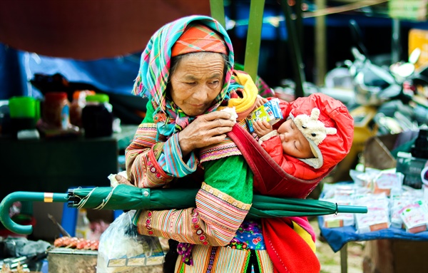 Không khí của chợ phiên ăn sâu vào trong bữa ăn, giấc ngủ của những em bé người Mông