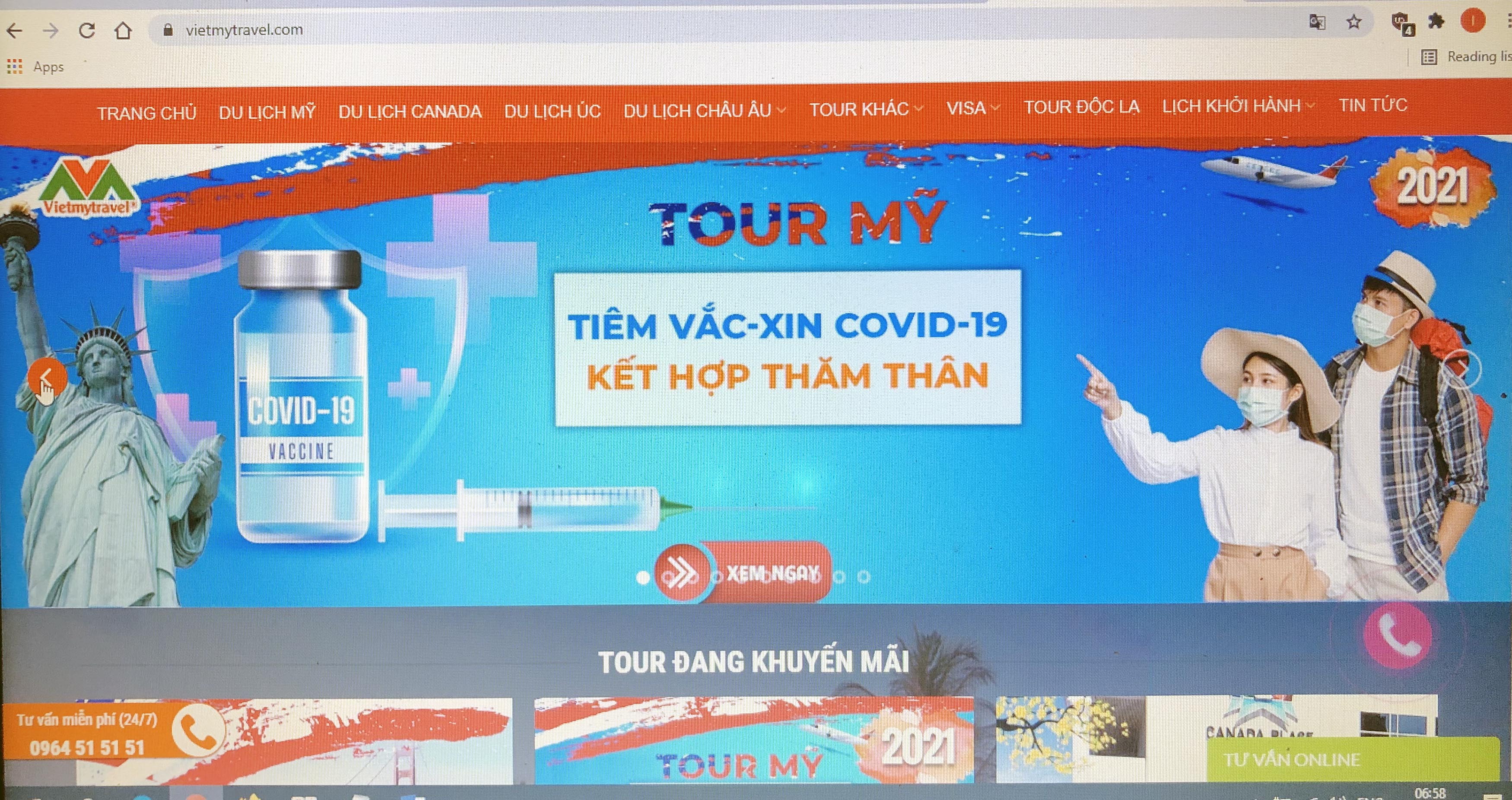 Thông tin tour đi Mỹ kết hợp tiêm vắcxin ngừa Covid-19 được giới thiệu trên website của nhiều đơn vị lữ hành