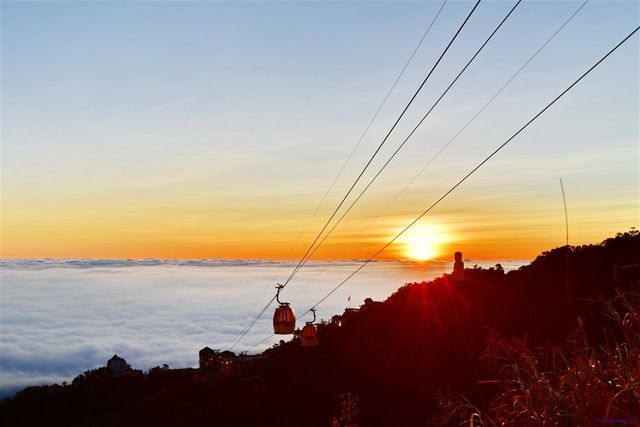 Cáp treo Bà Nà đưa du khách băng qua những cánh rừng nguyên sinh xanh ngút ngàn của núi Chúa. Thi thoảng, bật lên trên nền xanh ấy là những vạt hoa rừng trắng tinh khôi, đỏ rực, vàng tươi… Thác Tóc Tiên vắt qua những triền núi, đẹp như dải lụa bạc. Tiếng ào ào trên những đoạn thác đổ dốc, róc rách tiếng nước len qua khe suối dưới chân thác. Núi rừng bên ngoài khung cửa cabin, khi trong veo rực rỡ những ngày nắng, khi bồng bềnh lẫn trong mây, lúc lại bảng lảng sương mờ giăng giăng ngày đông lạnh. Hiếm có hành trình du ngoạn nào đẹp và nên thơ như thế.