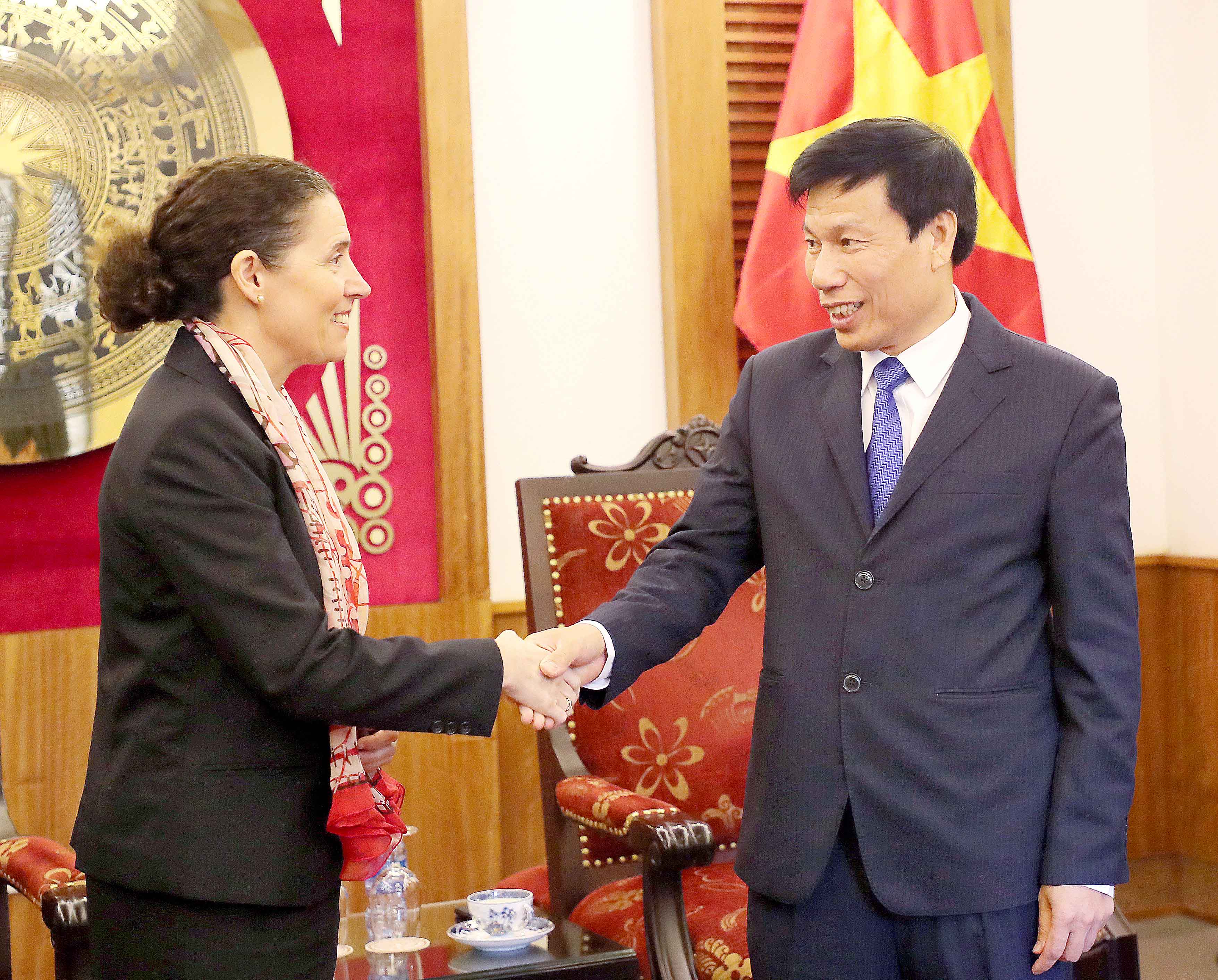 Tại buổi tiếp, Bộ trưởng Nguyễn Ngọc Thiện chào mừng bà Đại sứ nhận nhiệm kỳ trong năm Việt Nam và Uruguay kỷ niệm 25 năm quan hệ ngoại giao (1993- 2018), cột mốc quan trọng trong quan hệ hai nước.