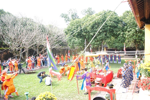 Trong phần nghi lễ, có các đội nghệ sĩ của Nhà hát Nghệ thuật truyền thống Cung đình Huế trình diễn Nhã nhạc cung đình triều Nguyễn. Lực lượng hạ nêu mặc trang phục của cung đình triều Nguyễn xưa, thực hiện nhuần nhuyễn các công đoạn của một lễ hạ nêu dưới thời cung đình xưa…