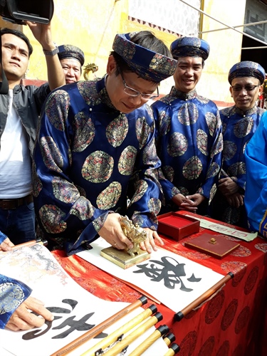 TS. Phan Thanh Hải- Giám đốc Trung tâm Bảo tồn Di tích Cố đô Huế khai ấn cung chúc tân xuân.
