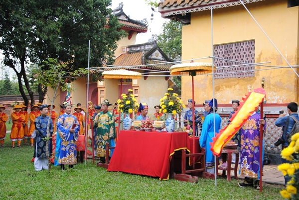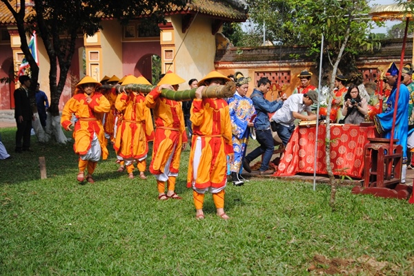Du khách thích thú với lễ hạ nêu và khai ấn tại Hoàng cung Huế
