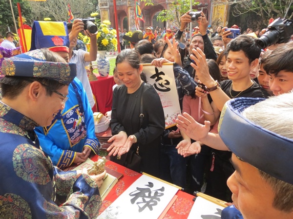 Đông đảo du khách tham quan di sản Huế đã tập trung để xin chữ đầu năm.