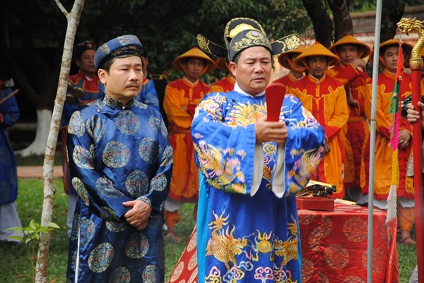 Thực hiện nghi lễ trước khi hạ nêu tại di tích Thế Miếu.