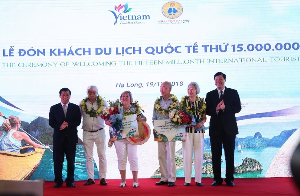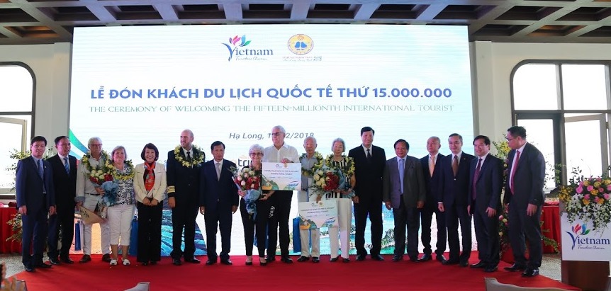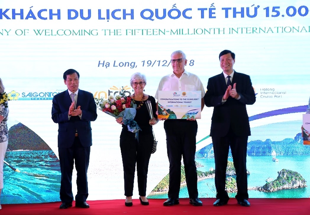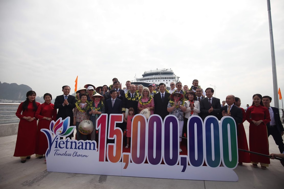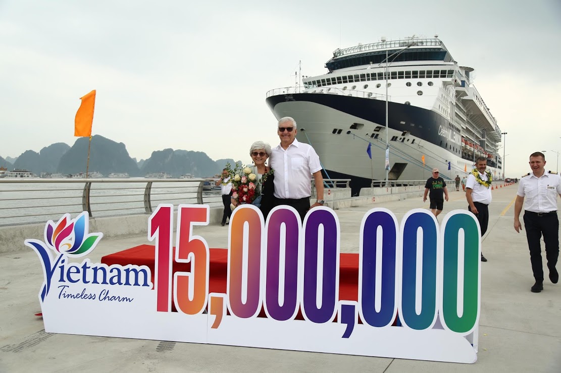 Ba vị khách may mắn nói trên đến tham quan Hạ Long trên chuyến tàu biển Celebrity Millennium, chở hơn 2.000 du khách cập Cảng tàu khách quốc tế Hạ Long do Saigontourist khai thác. Tại lễ đón, Bộ trưởng Nguyễn Ngọc Thiện, Chủ tịch tỉnh Nguyễn Đức Long và các lãnh đạo ngành Du lịch, lãnh đạo tỉnh Quảng Ninh, đại diện tập đoàn SunGroup và Saigontourist đã tặng kỷ niệm chương cùng các phần quà cho các vị khách thứ 15 triệu và 2 vị khách liền kề cùng các phần quà lưu niệm cho các du khách trên cùng chuyến tàu Celebrity Millennium.