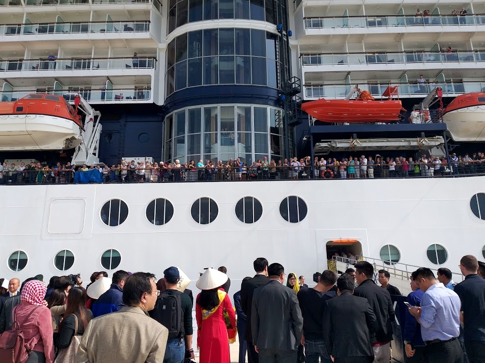 Có tới hơn 2000 du khách trên siêu du thuyền Celebrity Millennium đến Hạ Long hôm nay. Ảnh: Nam Nguyễn