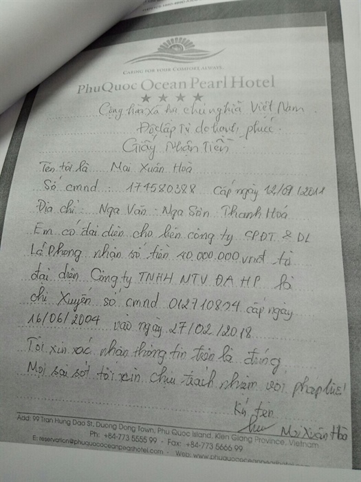 Sau khi thỏa thuận xong người này có đề nghị Công ty Minh Quân cấp số tài khoản ngân hàng để chuyển tiền đặt cọc. Tuy nhiên sau khi đưa đoàn ra sân bay, chính người này lại báo lại với công ty đề nghị sẽ thanh toán vào chiều về, tức là khi đón đoàn từ sân bay Nội Bài về trung tâm Hà Nội vào ngày 28.2. Do đã có nhiều lần làm việc với phía Công ty ĐAHP và rất tin tưởng nên chúng tôi đã đồng ý với đề nghị của người tự xưng là đại diện của công ty này. Đến ngày 28.2, khi xe của Công ty Minh Quân đón đoàn từ sân bay Nội Bài về thì công ty không nhận được tiền theo đúng thỏa thuận trước đó từ phía Công ty ĐAHP hay ông Mai Xuân Hòa.
