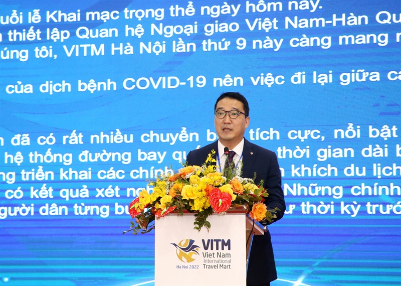 Lãnh đạo Tổng cục Du lịch Hàn Quốc tại Hà Nội phát biểu