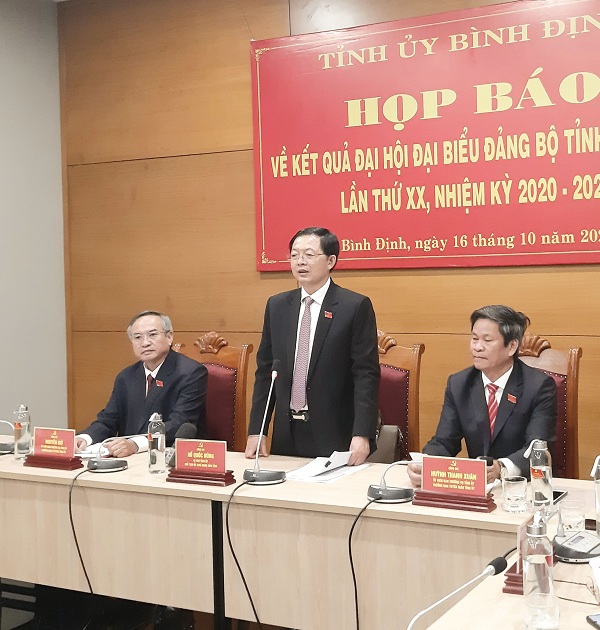 Phát biểu tại cuộc họp báo, Bí thư Tỉnh ủy Hồ Quốc Dũng nhấn mạnh: Đại hội XX Đảng bộ tỉnh Bình Định lần này có ý nghĩa đặc biệt quan trọng, với chủ đề: “Tăng cường xây dựng Đảng bộ và hệ thống chính trị trong sạch, vững mạnh; phát huy truyền thống, sức mạnh đại đoàn kết toàn dân; huy động, sử dụng có hiệu quả mọi nguồn lực, đẩy mạnh đổi mới sáng tạo, phát triển tỉnh Bình Định nhanh, toàn diện và bền vững”, đây cũng là định hướng, phương châm chỉ đạo trọng tâm xuyên suốt của Đảng bộ tỉnh trong 5 năm tới và định hướng, tầm nhìn trong giai đoạn tiếp theo.