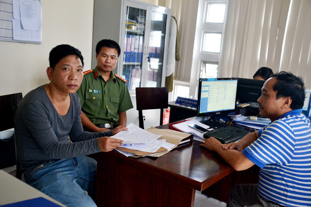 Đoàn liên ngành làm việc với lái xe xích lô Tống Anh Thạnh (ngoài cùng bên trái) vì đã “chặt chém” hai du khách Mỹ