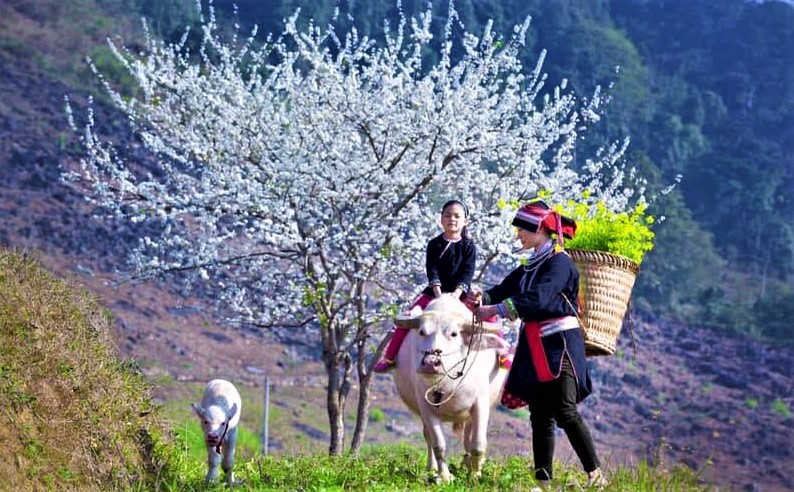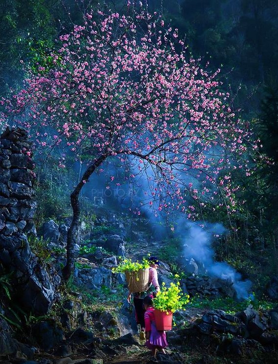 Những vùng rừng núi thơ mộng như Mộc Châu, Hà Giang, Sa Pa… cũng là những nơi mà nhiều người rỉ tai nhau khi khởi hành đầu năm: “Xuân này, nhớ đi trên những cung đường hoa phía Bắc”. Trên ấy, mùa này, từ Quản Bạ đến Yên Minh, sang Đồng Văn, Mèo Vạc (Hà Giang), đâu đâu cũng thấy hoa đào thắm đỏ, hoa lê trắng tinh khôi. Ở Mộc Châu, cải vàng, cải trắng, hoa mận bung nở khắp cao nguyên.
