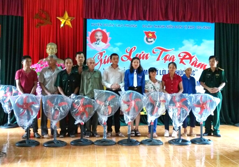 Tại chương trình giao lưu Huyện đoàn, Đơn vị X264, Kho 102 đã trao 13 suất quà tổng trị giá 3.900.000 đồng cho 13 hộ gia đình chính sách khó khăn, gia đình thương binh, liệt sĩ.