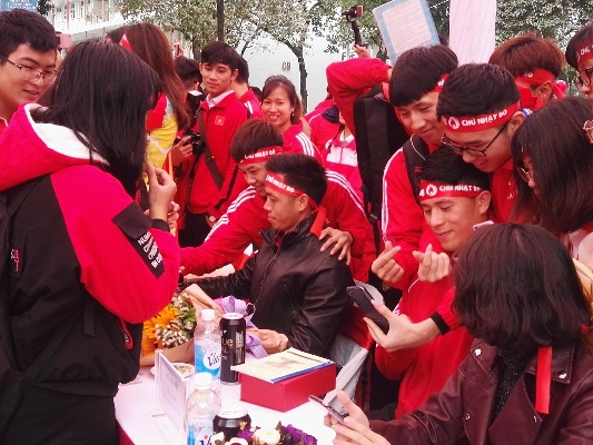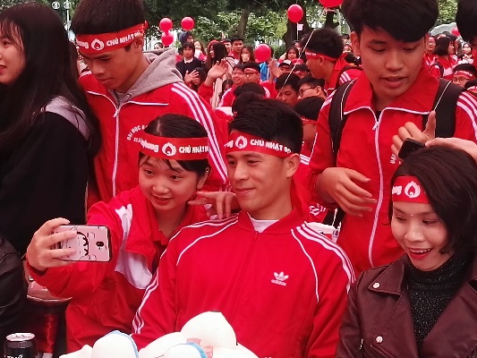Sự kiện đã thu hút được nhiều ca sĩ, nghệ sĩ, hoa hậu, cầu thủ nhằm truyền cảm hứng cho giới trẻ cũng như lan toả ý nghĩa nhân văn hiến máu cứu người, như NSƯT Xuân Bắc, ca sĩ Đông Hùng, hoa hậu Tiểu Vy, đặc biệt “hot” nhất là cầu thủ Văn Quyết và Đình Trọng. Không bỏ lỡ sự kiện “có một không hai” được gặp “thần tượng”, người hâm mộ và rất nhiều sinh viên có mặt tại Ngày hội đã vây quanh chụp hình và xin chữ ký của hai cầu thủ. Chia sẻ với người hâm mộ, Đình Trọng nhấn mạnh: “Đây là sự kiện mang tính nhân văn sâu sắc, Trọng rất vui khi được tham gia Chủ nhật đỏ, được gặp gỡ rất nhiều bạn sinh viên đầy nhiệt huyết. Hy vọng sự kiện sẽ được nhân rộng và lan tỏa những nghĩa cử cao đẹp tới cộng đồng, đặc biệt là giới trẻ”.