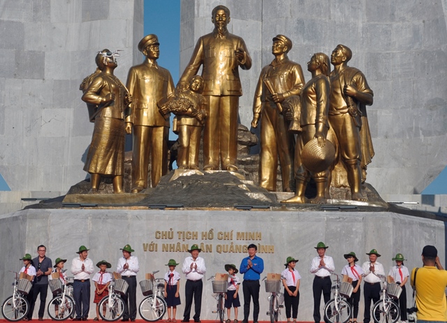 Phó Thủ tướng Thường trực Chính phủ Trương Hòa Bình cùng lãnh đạo Trung ương Đoàn và tỉnh Quảng Bình tặng xe đạp cho học sinh nghèo