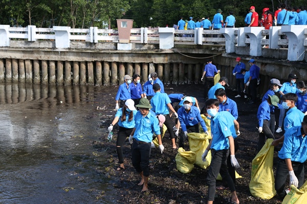 Thanh niên tỉnh Cà Mau tham gia vệ sinh môi trường sau buổi lễ