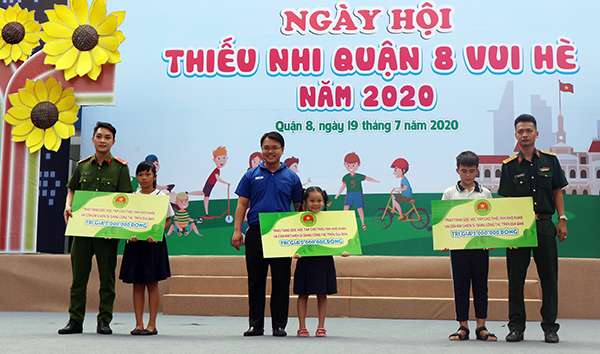 Điểm nhấn của chương trình là “Ngày hội thiếu nhi Quận 8 vui hè” được tổ chức sáng ngày 19.7 tại Trường THCS Lê Thánh Tông, quận 8. Tại ngày hội, Ban tổ chức đã trao tặng 50 phần quà (trị giá 300.000 đồng/phần), 22 chiếc xe đạp, 20 suất học bổng (trị giá 1 triệu đồng/suất), và 3 góc học tập dành cho các em đội viên, thiếu nhi có hoàn cảnh khó khăn trên địa bàn; tổ chức chương trình biểu diễn nghệ thuật phục vụ các em thiếu nhi do các đơn vị thuộc Sở VH&TT TP.HCM biểu diễn, sân chơi “Em vui đọc báo đội” của Báo Khăn Quàng Đỏ, các gian hàng trò chơi dân gian, tập huấn công tác phòng cháy, chữa cháy…