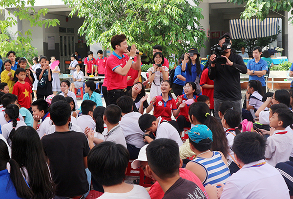 Ca sĩ Chí Thiện - đại sứ chương trình hè tình nguyện TP.HCM giao lưu với các học sinh tại ngày hội