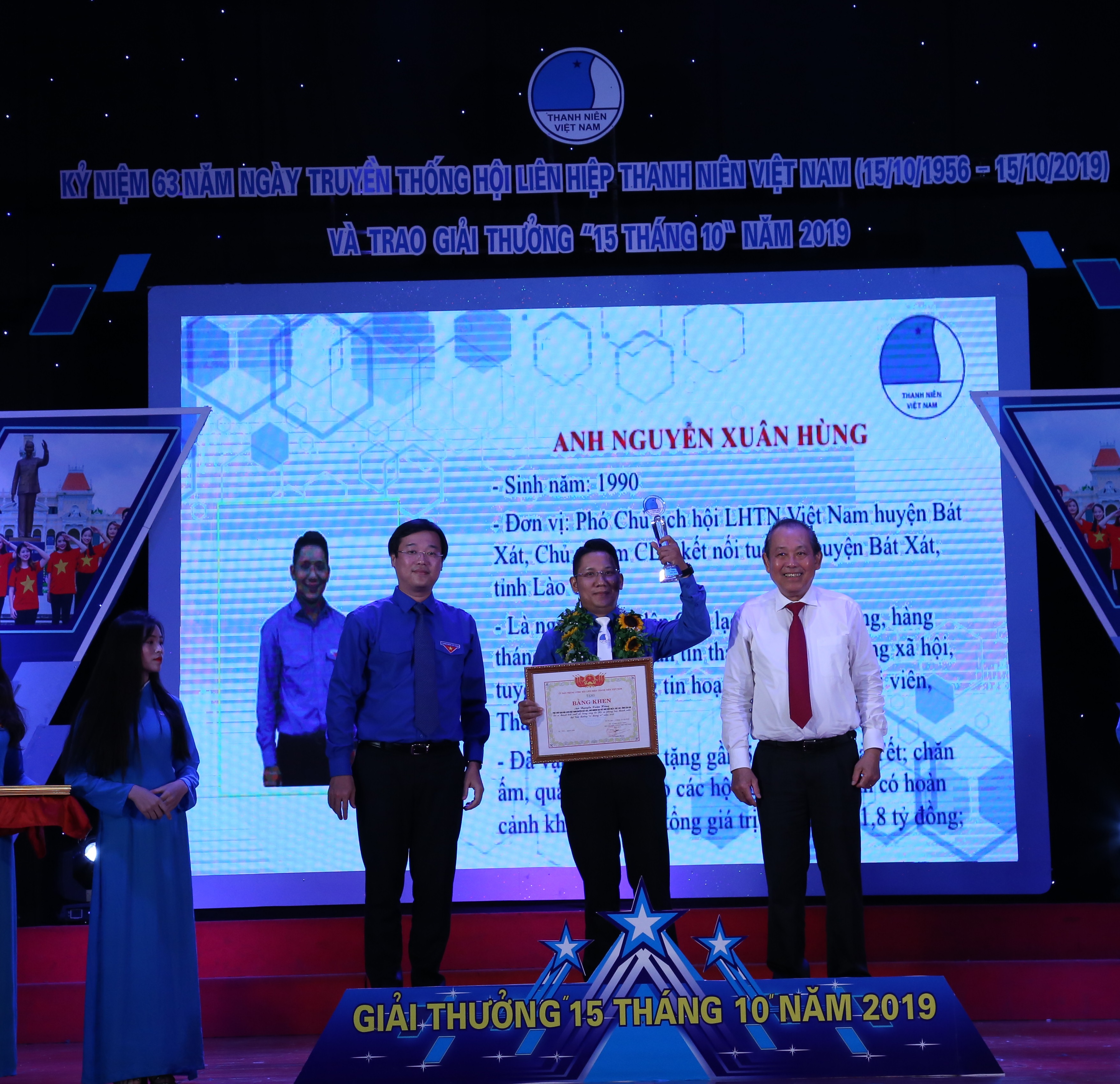Tại chương trình, Trung ương Hội LHTN Việt Nam đã trao Giải thưởng “15 tháng 10” tặng 15 cán bộ hội có nhiều nỗ lực, đóng góp xứng đáng cho công tác Hội và phong trào thanh niên tại đơn vị, địa phương; là những thủ lĩnh thanh niên vượt qua khó khăn, luôn đam mê, nhiệt huyết với công tác Hội, luôn nuôi dưỡng tinh thần sáng tạo, đổi mới để đạt hiệu quả cao hơn, trong công tác.