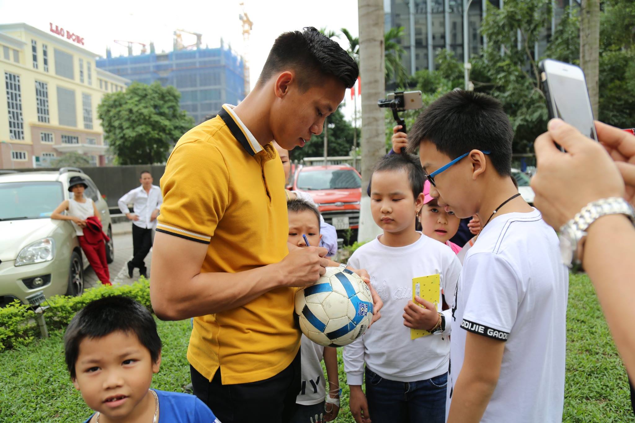 Tại Thư viện Khoa Bệnh máu trẻ em, đội trưởng đội tuyển U23 Việt Nam đã giao lưu, chia sẻ với các bệnh nhi đang hằng ngày hàng giờ phải chống chọi với căn bệnh quái ác. Thể hiện tình cảm của mình, anh cũng tặng quà, lì xì cho các bé nhằm động viên các bệnh nhi tiếp tục chữa bệnh, lạc quan vào cuộc sống.