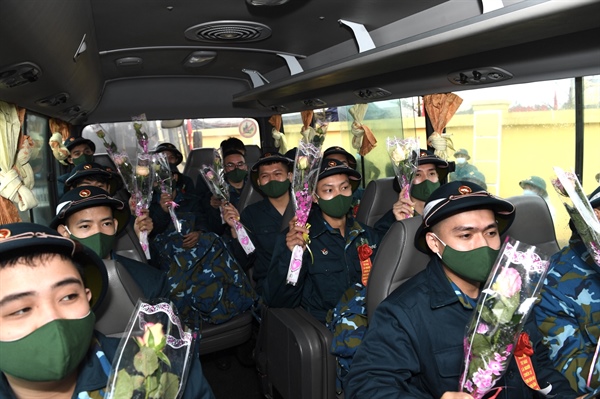 Đúng 8 giờ 30, các tân binh đã bắt đầu di chuyển lên đơn vị nhận quân