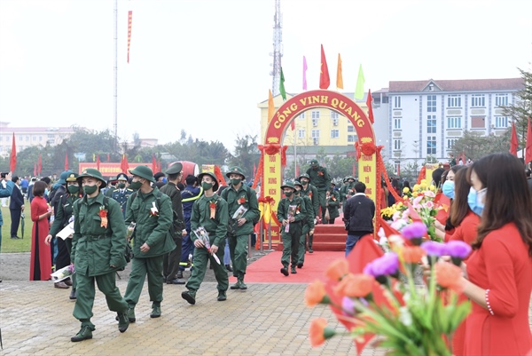 VHO- Ngày 16.2, lễ giao nhận quân  lên đường nhập ngũ năm 2022 của thành phố Hà Nội đã diễn ra trang trọng, nhanh gọn, an toàn tại 30 quận, huyện, thị xã.