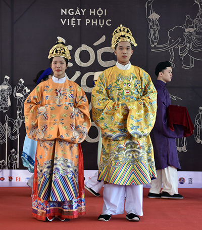 Các bạn trẻ trình diễn cổ phục tại ngày hội