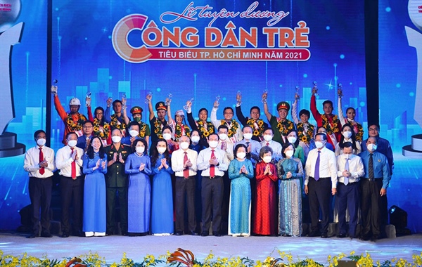 Lãnh đạo TP.HCM cùng các đại biểu chúc mừng các gương “Công dân trẻ tiêu biểu TP.HCM” năm 2021