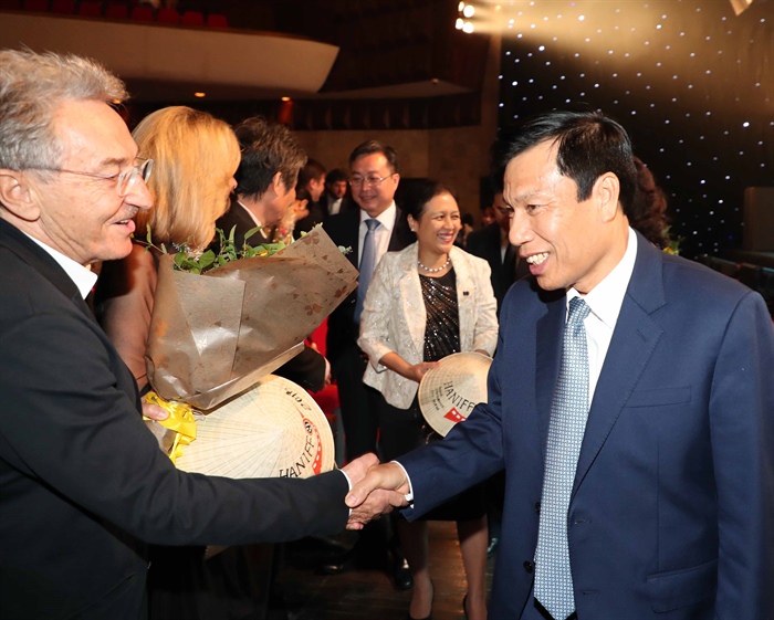 Bộ trưởng Nguyễn Ngọc Thiện với các nghệ sĩ