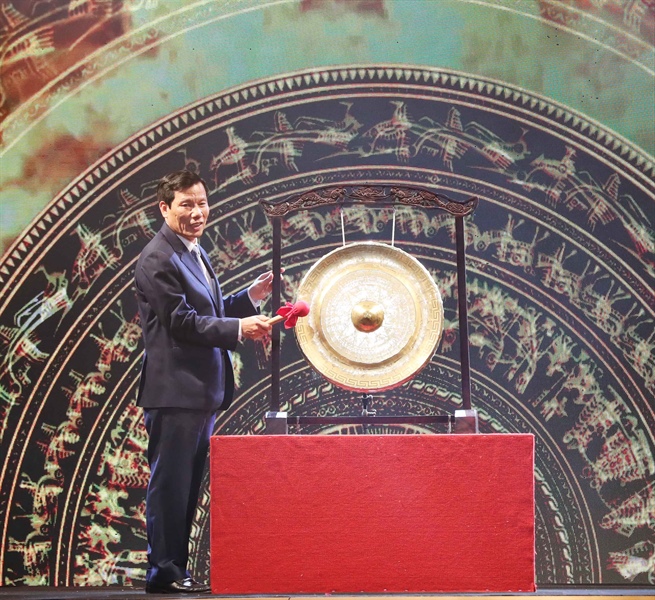 Bộ trưởng Nguyễn Ngọc Thiện phát biểu và đánh cồng khai mạc