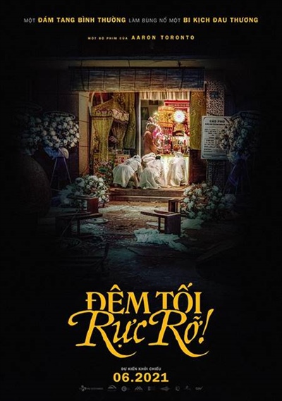 Đêm tối rực rỡ! do Aaron và vợ - diễn viên kiêm nhà sản xuất Nhã Uyên thai nghén, thực hiện . Bộ phim khai thác một chủ đề không hề xa lạ với bất kì người Việt Nam nào nhưng hãy còn hiếm thấy với điện ảnh nội địa: đám tang. Với gần 1 phút 30 giây, trailer đầu tiên của Đêm tối rực rỡ! hé lộ những câu chuyện, những bí ẩn và xung đột trong đám tang ở một gia đình trung lưu nọ.