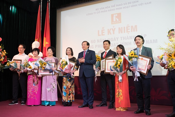 “Để ghi nhận những thành tích đó, trong 60 năm qua, Hãng phim Hoạt hình Việt Nam đã vinh dự được Đảng và Nhà nước tặng thưởng nhiều phần thưởng cao quý như Huân chương Độc lập, Huân chương Lao động, Huân chương kháng chiến cùng nhiều danh hiệu, phần thưởng cao quý khác. Cũng nhân dịp này, Bộ trưởng Bộ VHTTDL đã quyết định tặng Bằng khen cho tập thể Hãng phim Hoạt hình Việt Nam và các cá nhân xuất sắc...”, Thứ trưởng Tạ Quang Đông cho biết.