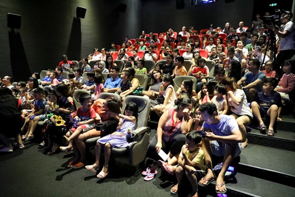 Trước giờ chiếu 5 bộ phim hoạt hình gồm: Chú chó cứu hỏa,Vầng sáng ấm áp, Bí mật hang Duôn, Chim ưng và Rái cá, Quả chín lìa cành, lượng ghế của rạp đã chật kín, nhiều phụ huynh phải ngồi xuống đất để nhường ghế cho con em mình.