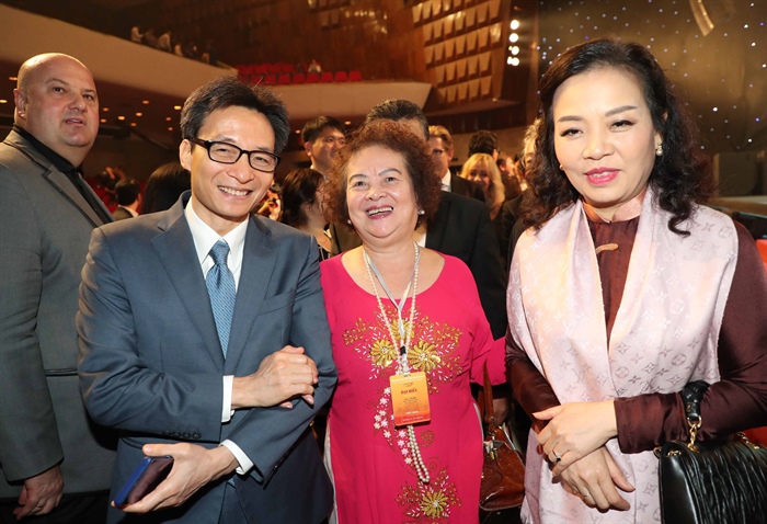 Phó Thủ tướng Vũ Đức Đam với các nghệ sĩ và lãnh đạo Cục Điện ảnh tại đêm khai mạc Liên hoan phim
