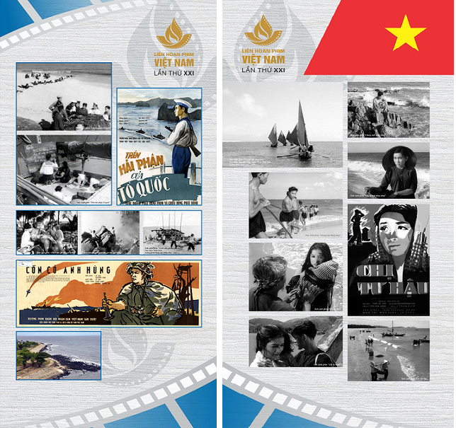 - Ngay trong phần giới thiệu chung, pano giới thiệu LHP Việt Nam lần thứ XXI - 2019 đã lấy hình ảnh logo nhận diện của LHP với khẩu hiệu “Xây dựng nền công nghiệp điện ảnh Việt Nam dân tộc, nhân văn, sáng tạo và hội nhập” là điểm nhấn. Các yếu tố dân tộc, nhân văn cũng được thể hiện hài hòa cùng với các yếu tố sáng tạo và hội nhập trong cách khai thác chủ đề về biển đảo trong tác phẩm điện ảnh. Ở đó, công chúng sẽ cảm nhận được niềm tự hào về tài nguyên biển đảo, xuyên suốt mọi thế hệ, từ ngàn xưa cho đến hôm nay của người dân Việt Nam. Trải dọc theo chiều dài đất nước, biển đảo chiếm trọn tình yêu và niềm tự hào của người dân Việt Nam. Trong chiến tranh, biển đảo trở thành chiến tuyến bảo vệ đất nước. Khi hòa bình, với lợi thế về phong cảnh, tiềm lực dồi dào, biển đảo góp phần không nhỏ để phát triển kinh tế nước nhà. Bảo vệ biển, bảo vệ ngư trường đồng nghĩa với việc giữ lại môi trường sống cho các thế hệ. Từ bao đời nay, biển đảo mang lại nguồn cảm hứng vô tận cho các nghệ sĩ, đặc biệt là nghệ sĩ điện ảnh. Hình ảnh biển đảo trở thành bối cảnh và góp phần tạo nên thành công của nhiều bộ phim.