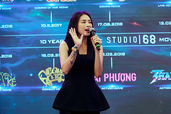 Ngô Thanh Vân trên sân khấu công bố dự án Lê Nhật Lan