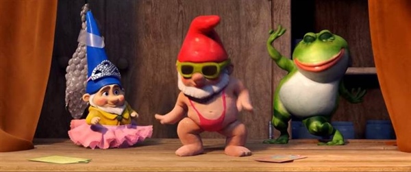 Trong Sherlock Gnomes: Thám tử siêu quậy sẽ có một phân cảnh trình diễn cực kỳ “bá đạo” của ba diễn viên bất đắc dĩ: cậu bé nhút nhát Benny, nàng ếch điệu đà Nanette và đặc biệt là “thánh quẩy” Mankini. Như thường lệ, Mankini vẫn luôn là nhân vật chiếm spotlight của phim nhờ những vũ điệu lắc mông độc quyền trong bộ bikini đỏ chói lóa, với tính cách vui vẻ, lạc quan cùng thần thái tự tin, không ngại “bộc lộ bản chất của mình”.Bên cạnh đó, câu chuyện của cô nàng ếch Nanette bạo dạn và chàng trai Benny rụt rè cũng không kém phần long trọng khi sự đáng yêu siêu cấp của cả hai cộng hưởng, hứa hẹn mang đến một “phản ứng hóa học” bất ngờ.
