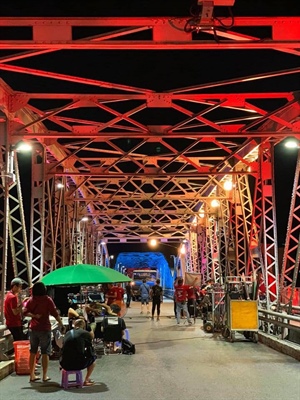 Một cảnh quay tại cầu Trường Tiền của đoàn phim “Gái già lắm chiêu 3”