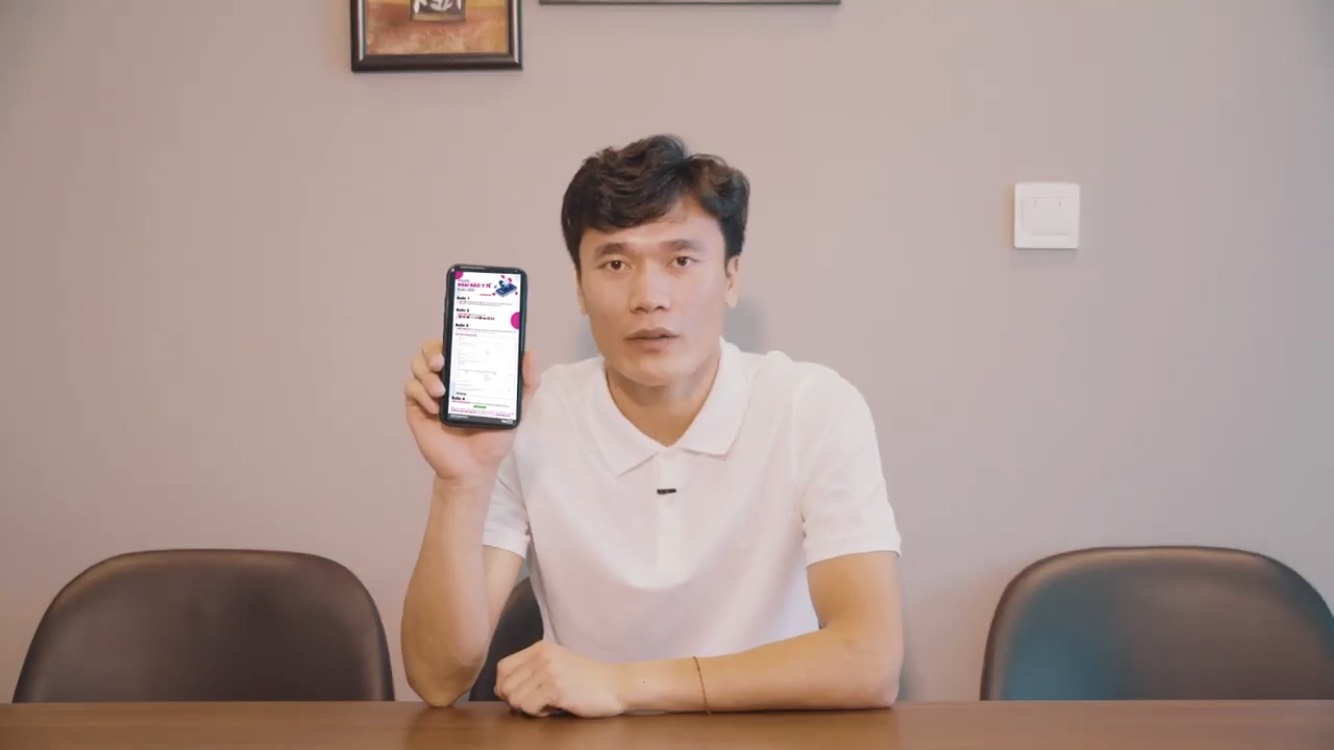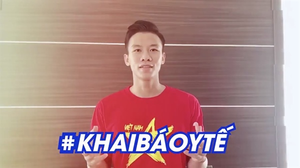 Đội trưởng tuyển quốc gia Quế Ngọc Hải nhắc nhở người dân khai báo y tế, giữ gìn vệ sinh sạch sẽ