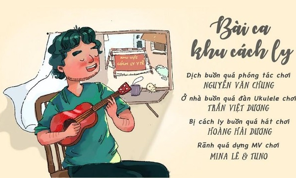 Bài ca khu cách ly được thực hiện bởi: Dịch buồn quá phóng tác chơi: Nguyễn Văn Chung; Ở nhà buồn quá đàn Ukulele chơi: Trần Việt Dương; Bị cách ly buồn quá hát chơi: Hoàng Hải Dương; Rảnh quá dựng MV chơi: Mina Le & Tuno. Có thể thấy, dịch khiến công việc của nhiều người bị gián đoạn, đình trệ nhưng tinh thần sáng tạo của người nghệ sĩ thì vẫn luôn hiện hữu, phát triển với mong muốn đem lại tiếng cười và những điều tích cực cho xã hội.