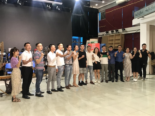 Các thí sinh trao đổi kỹ năng để có thể chuyển tải tốt nhất cảm xúc đến người nghe