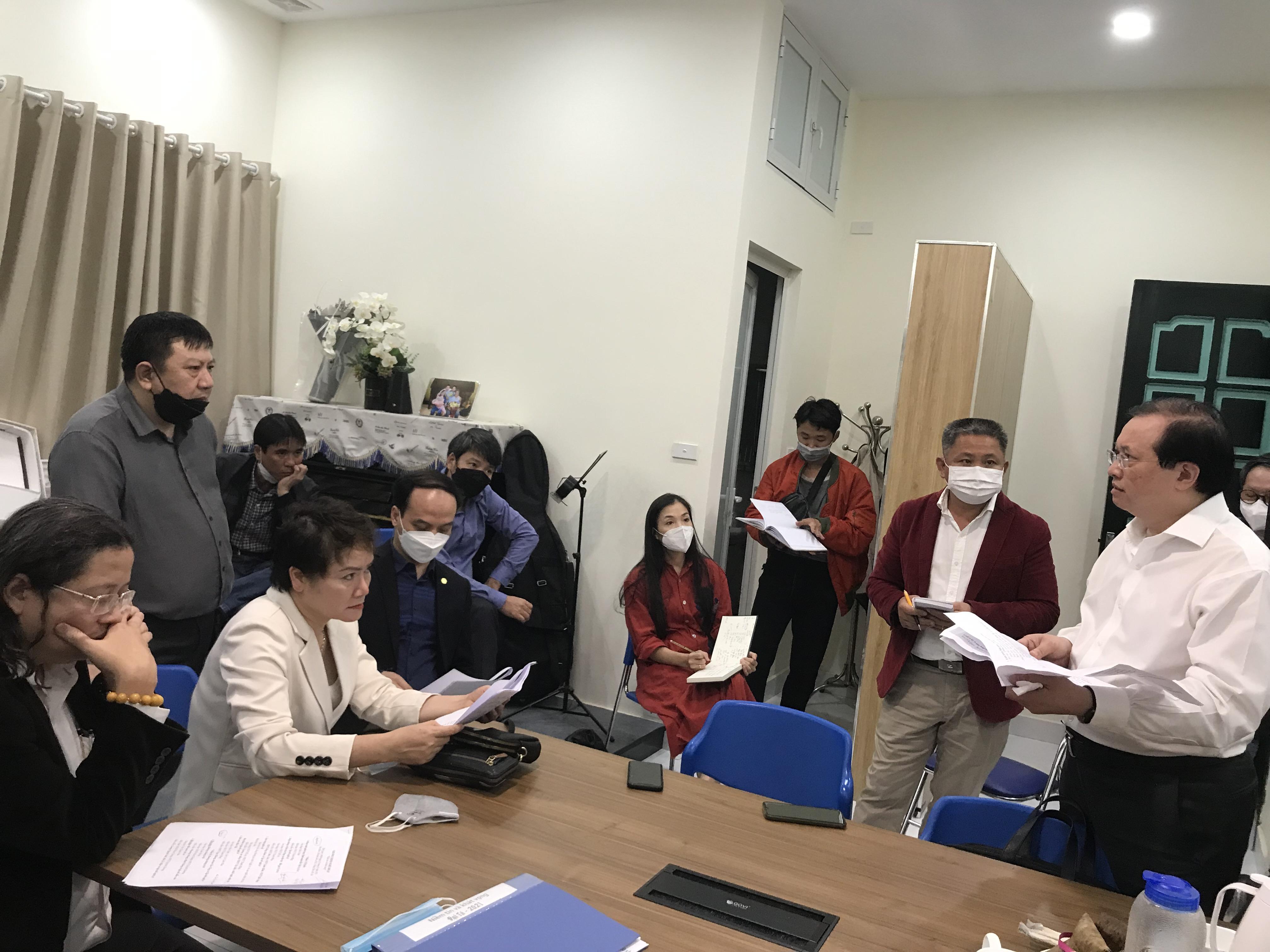 Thứ trưởng Tạ Quang Đông trao đổi với ê kíp sáng tạo xây dựng chương trình Ảnh: T.L