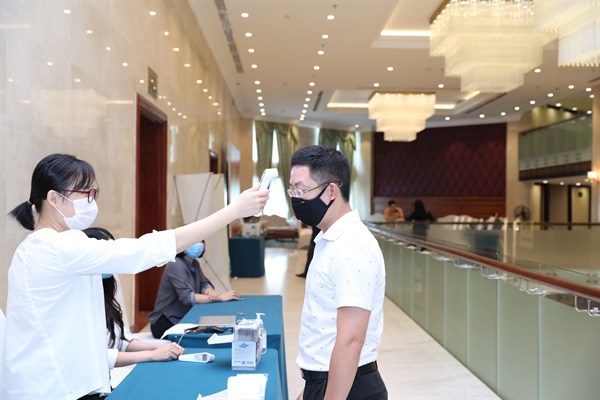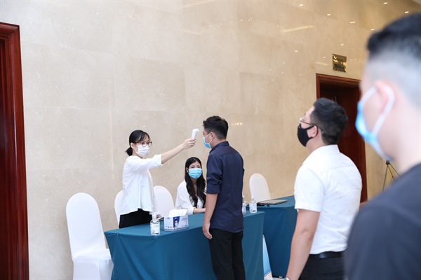 BTC thực hiện giãn cách, đo thân nhiệt cho các thí sinh