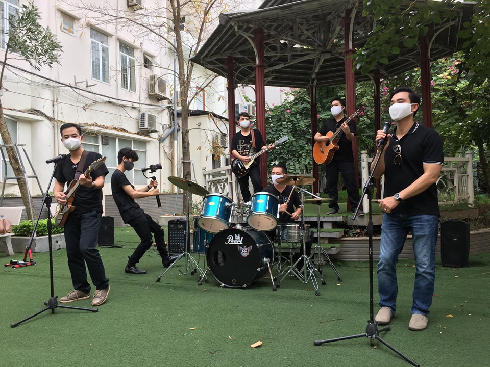 “Bình thường thì giờ này đã đi làm quá nửa học kỳ 2 rồi. Nhưng hiện tại chúng tôi vẫn đang nghỉ… Tết (từ ông Công ông Táo năm ngoái). Với kỳ nghỉ quá dài như vậy nên chúng tôi rất mong nhớ, khát khao được tới trường. Từ ngày 16.3, chúng tôi có quyết định về việc thực hiện đào tạo từ xa, làm việc và học tập online nên tôi chỉ “gặp” đồng nghiệp và sinh viên qua các phương tiện thông tin. Điều đó khiến tôi và các thành viên ban nhạc HUC quyết tâm cùng nhau hình thành nên ca khúc với chủ đề học đường chung tay đẩy lùi Covid-19”, nhạc sĩ, thầy giáo Vũ Huy Sơn nói.
