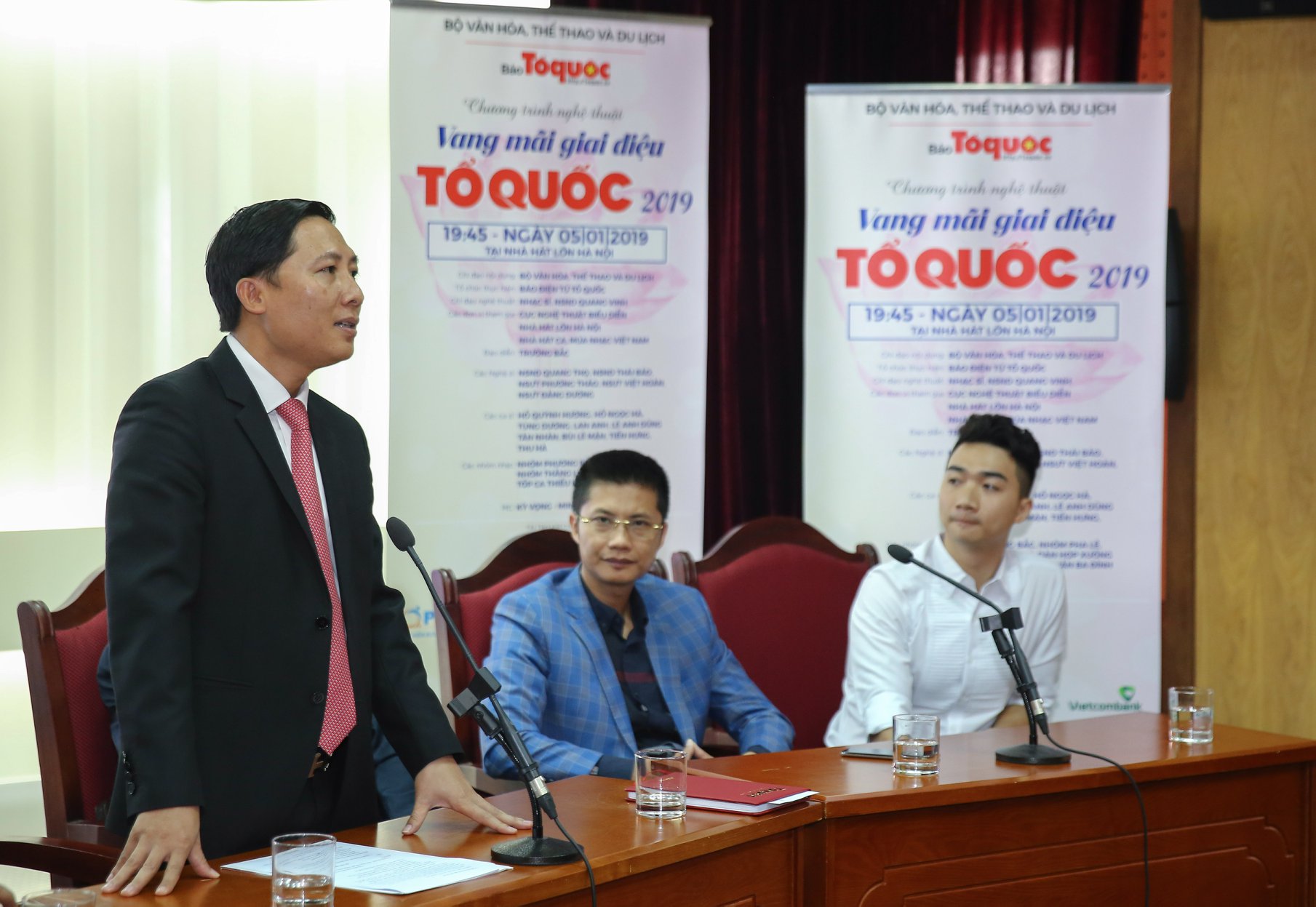Tổng Biên tập Báo điện tử Tổ Quốc Nguyễn Thanh Liêm chia sẻ, thành công của những đêm nhạc "Vang mãi giai điệu Tổ Quốc" trong hai năm 2017, 2018 đã để lại nhiều dấu ấn trong lòng khán giả yêu âm nhạc. Chương trình nghệ thuật năm nay sẽ tái ngộ công chúng vào 20 giờ ngày 5.1.2019 tại Nhà hát Lớn Hà Nội.