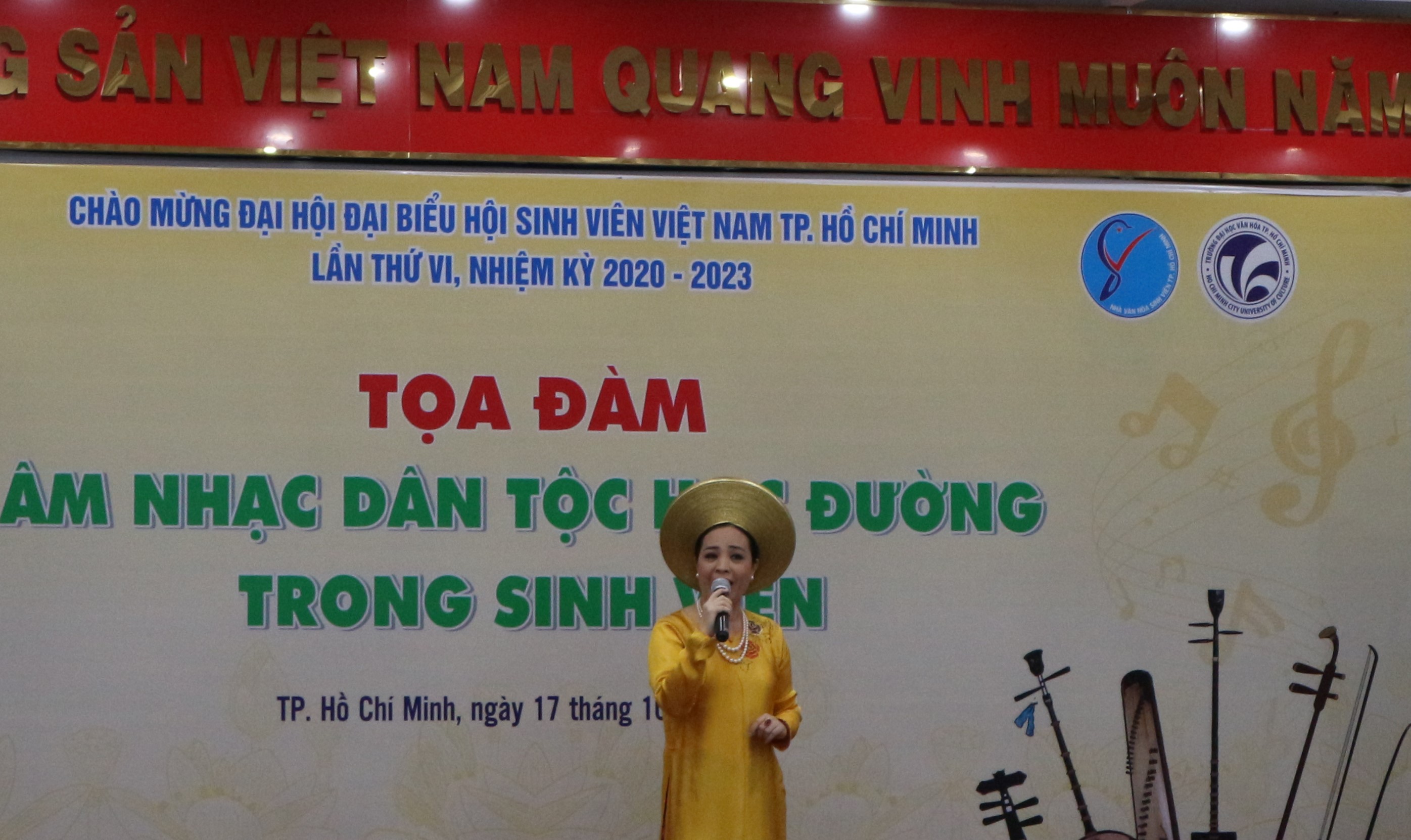 Chương trình “Âm nhạc dân tộc học đường” đã được tổ chức thực hiện từ năm 2015 tại Nhà Văn hóa Sinh viên TP.HCM và các trường Đại học, Cao đẳng trên địa bàn thành phố. Chuỗi chương trình đã được đầu tư nghiêm túc, chỉnh chu, chú trọng nâng cao cả về chất và lượng. Thường xuyên triển khai các hoạt động mới hoặc tạo mọi điều kiện để lồng ghép, phát huy yếu tố âm nhạc dân tộc trong các cuộc thi chương trình, góp phần giáo dục tinh thần yêu nước và giữ gìn truyền thống tốt đẹp của dân tộc cho giới trẻ. Trong 5 năm, Nhà Văn hóa Sinh viên TP.HCM đã tổ chức gần 50 Hội thảo tại các trường, ký túc xá, bình quân mỗi buổi thu hút được 300 sinh viên tham gia; Tổ chức 40 buổi dạy hát, dạy nhạc cụ dân tộc cho 2000 sinh viên; Thành lập mới, hỗ trợ tái hoạt động 20 Câu lạc bộ bảo tồn Âm nhạc dân tộc; Tập huấn cho 100 Câu lạc bộ văn nghệ về giá trị của âm nhạc dân tộc… Đây là cả một quá trình nỗ lực, cố gắng để phát huy và bảo tồn giá trị trong âm nhạc dân tộc của Nhà văn hóa Sinh viên TP.HCM.